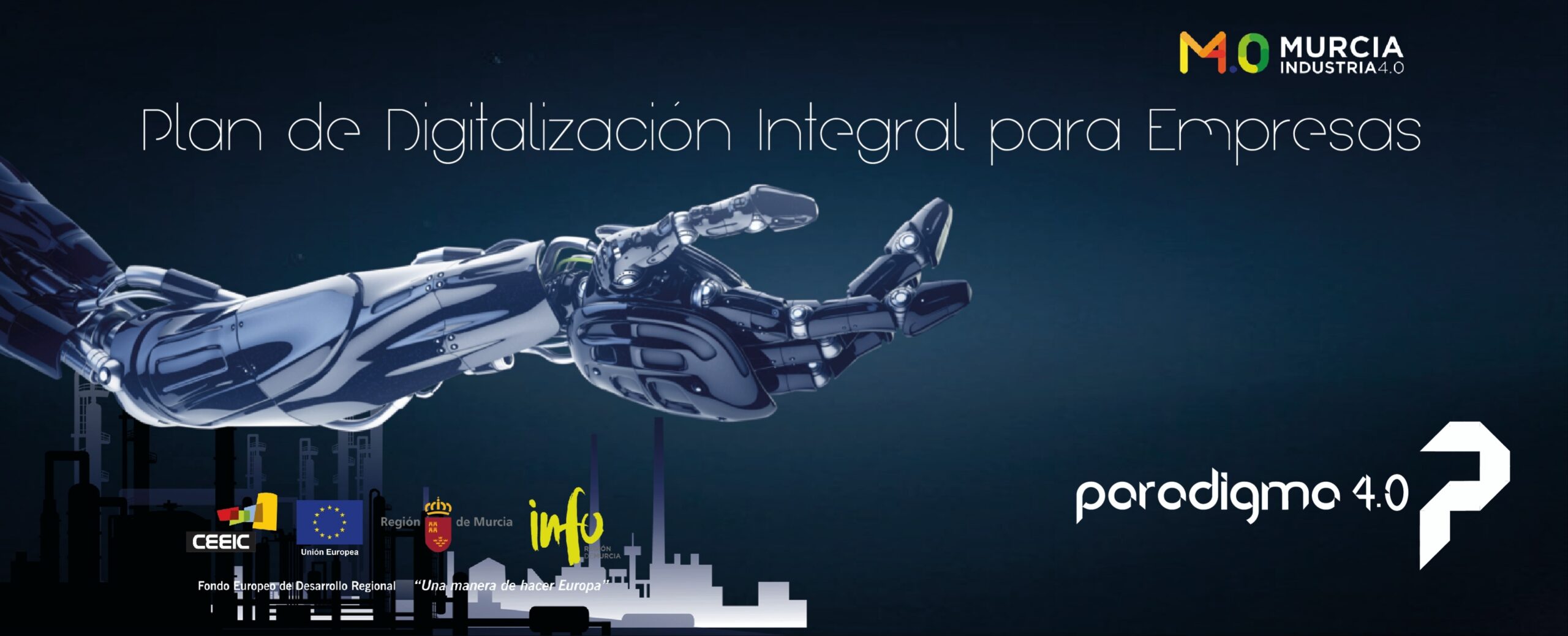 El Centro Europeo de Empresas e Innovación de Cartagena (CEEIC), adscrito al Instituto de Fomento de la Región de Murcia perteneciente a la Consejería de Empleo, Universidades, Empresa y Medio Ambiente, lanza el programa “Paradigma 4.0”, una iniciativa que pretende asistir y dar soporte a pymes de la Región de Murcia en su proceso de Transformación Digital.